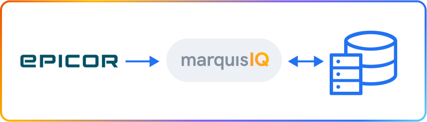 Data flows from Epicor ERP into Marquis IQ. Syncs run on a schedule and use incremental updates to keep data current. Historical data is retained so you can report across time periods.